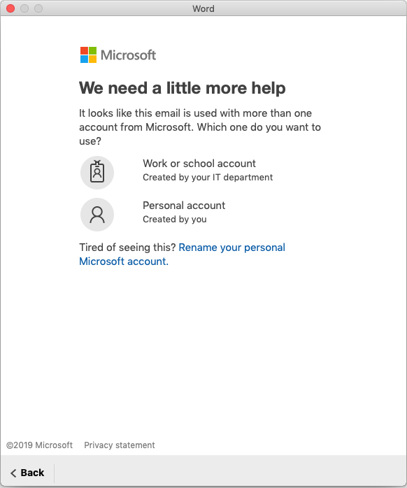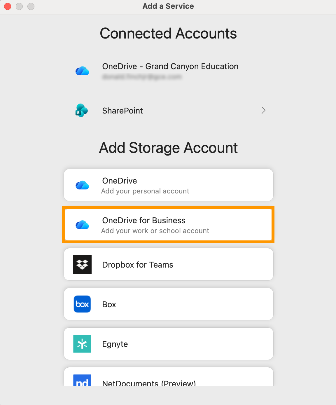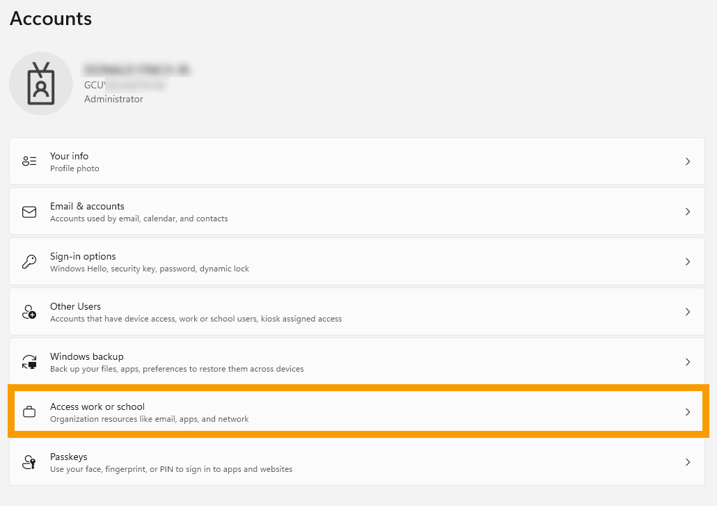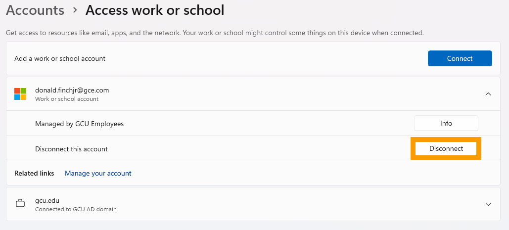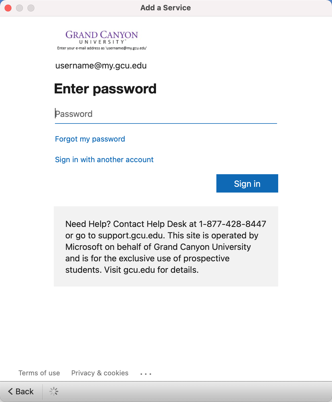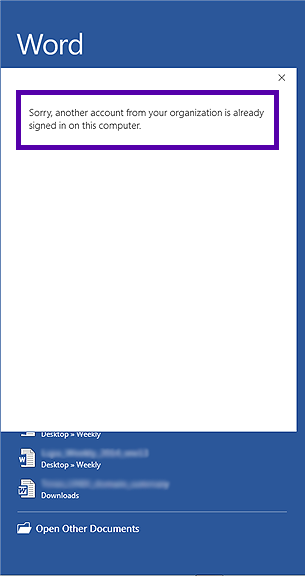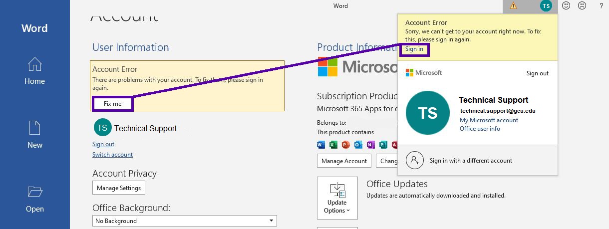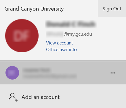If you missed the step to sign into Microsoft 365 or need to switch accounts at any point, you can do so within any Microsoft 365 program, such as Word or PowerPoint. After launching an Microsoft 365 application, you can choose to sign in or switch accounts. NOTE To complete the sign in process, you may be prompted to complete Multi-Factor Authentication (MFA). Which can happen when signing into any Microsoft programs with your GCU student account.Expand/Collapse AllWindows Not Signed In If you are not signed in yet, click Sign In in the upper-right hand corner of the window. You will need to sign in using your GCU email address (username@my.gcu.edu) and password. Your personal email address is not licensed for free Microsoft 365 through GCU. Already Signed in with a Personal Account If an account other than your GCU email is showing, you can select your name in the top right corner and then Add an account to sign in with your GCU email. The first time you sign in you will be greeted with the Sign in window. Sign in with your full GCU email address (username@my.gcu.edu). If you are asked to confirm the type of account, select Work account to continue. Microsoft 365 will redirect you to a GCU login page, similar to the Student Portal. Enter your GCU password and select Sign in. Once signed in, the GCU email account will be the active one. To switch between accounts again, repeat the above steps. If you want to remove accounts from the application, click the Sign Out button or click the three dots and then Sign Out next to the account you want to remove. Removing a Microsoft License from Windows Devices If you are unable to activate Microsoft 365 on a Windows 11 device after trying the above steps, you may need to adjust the user that the Microsoft 365 license is currently assigned to. Follow the steps below to remove the Microsoft 365 license associated with your computer. If you are unable to see the Microsoft credentials in the credential manager, try removing the Microsoft account as that will remove the Microsoft credentials as well. NOTE The steps and screenshots below demonstrates the process for Windows 11 devices. Removing Microsoft Credentials In order to access the user settings, you will need to locate the Credential Manager. First, click on the Start Menu and search for Control Panel. Select Credential Manager. Select Windows Credentials on the right-hand side. Then, under Generic Credentials click the arrow for the Microsoft 365 credentials and choose Remove. Open your Microsoft 365 program and sign-in with your GCU Email and Password. Your Microsoft 365 programs should now be successfully activated. Removing Microsoft Account First, click on the Start Menu and search for Settings. Once the Windows Settings menu is open, select Accounts from the menu. Then select Access work or school, and then select the email that ends in @my.gcu.edu. Select Disconnect in the bottom right corner. After disconnecting, open your Microsoft 365 program and sign-in with your GCU Credentials. Your Microsoft 365 programs should now be successfully activated. NOTE If you are not signed into an email ending in @my.gcu.edu this may be the reason Microsoft 365 is unable to be activated. All GCU Students get access to Microsoft 365 through their GCU email. Microsoft Get Help Troubleshooter Microsoft Get Help Troubleshooters works by running tests to figure out what may be causing issues with Microsoft 365. It can fix many problems for you (or help fix them yourself). To get started, navigate to Microsoft 365 Troubleshooters and scroll down to find the appropriate troubleshooting process for the issue that you'd like to fix. Once you have found your troubleshooting process, click Start to run the troubleshooter. After launching the troubleshooter, you may see a Security Warning asking if you would like to run the troubleshooter. To proceed, select Open Get Help. At this point, your device will begin launching the application. You will be prompted with a window asking if you would like to run the troubleshooter. Select Yes to continue. After the troubleshooter runs, follow the instructions on-screen to best resolve your issue. Error: Sorry, another account from your organization is already signed in on this computer. Students may encounter this error randomly, but it is more likely to occur if a student took a leave of absence and recently started taking classes again. Unlike the other sign-in issues described above, if you have encountered the, “Sorry, another account from your organization is already signed in on this computer” error, you may not be able to sign out, switch accounts, or even uninstall the program. To correct this error, open any Microsoft 365 product and select Account from the left side menu. If you don't see this option right away, try creating a new document and then select File > Account. Beneath the User Information heading, you should see a yellow box titled, “Account Error”. Click the Fix me option within this box. You will then be prompted to sign into your Microsoft 365 account again. Enter your GCU email address and password. If this does not resolve the issues you are experiencing with your Microsoft 365 products and you’ve attempted all other troubleshooting within this article, please Contact Technical Support so we can investigate further. Error: The cached credentials have expired. This error, or the “This type of account doesn't work with this particular service. Please enter an email address or phone number associated with a different account” error, occurs when the OneDrive app is signed in with a different account. The steps below will resolve this error: Windows 11 Devices Select the Start Menu from the bottom left-hand corner of the screen and search for “OneDrive.” Select the OneDrive App from the search results to open the OneDrive folder location. Right click the OneDrive folder from the File Explorer navigation menu on the left-hand side of th