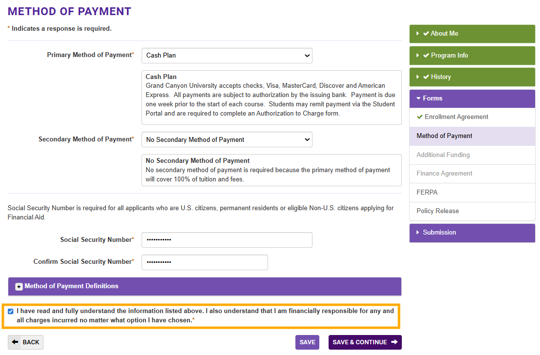 Technical Support assists students, applicants, and legal guardians with logging into the Apply.gcu.edu website, as well as troubleshooting a few specific problems with the application itself. While we try to assist to the best of our ability, we are not experts on the inside of the application and, therefore, may need to refer to your counselor for assistance that falls outside of our scope of service. The accordions below explain how to troubleshoot the specific issues we assist with concerning the inside of applications. Expand/Collapse All Accessing the Application Navigate to Apply.gcu.edu and login using your registered email and password. If you do not remember what your password is, try resetting it. For assistance with resetting your password, take a look at our article on Accessing Apply.gcu.edu. After logging into the Apply.gcu.edu website, you will need to select the application to continue. All of your active applications will appear on the first page. You can select an application to continue or select strong Create New Application. Updating Information A University Counselor is assigned to the application depending on the program of study selected. Your counselor then reviews the application for any errors. If there are errors, or you request to make changes, the application is placed in Needs Correction status. Only then can you log back into the application to make the necessary changes. If you are unable to make changes to your application, verify the following: You have completed basic browser troubleshooting such as clearing your cache and cookies, enabling pop-ups, or trying a new browser Check with your counselor that the document is in Needs Correction status You have tried clicking Back and Next If you have tried these basic troubleshooting methods and still cannot edit the information or the information is grayed out, then the information may need to be escalated by a counselor to be updated manually. Saving the Application The application works off of conditional formatting, which means that the options you select will change the upcoming pages in the application. While you are navigating within the application, you will have the option to go back, save your progress, or save and continue onto the next page. The application will display varied information based on the selections that are made within each section. Each time you select Save & Continue, the application will save the progress and load the remaining pages. If you are unable to select an option, you may need to go back to a previous section in order for the option to become available. Text Box Word Count There are pages on the application that may require you to explain one of your previous answers. For example, if you indicate that you have had a felony charge, you are required to explain what the charge was. These text boxes have a maximum word limit of 100 words. Going over the word count will result in the following error when moving to the next page: “A system error occurred during application process.” If you receive this error after typing in a text box, we recommend shortening your answer. Legal Guardian Sign-Off If an applicant is under the age of 18, they will be required to have a Legal Guardian review and sign-off on their application. Legal Guardians will receive an email when the applicant has completed their application, which requests that they review and sign off on it. For more information on this process, check out our other article Apply.gcu.edu Legal Guardian Sign-Off Program Selection If you would like to change your Program of Study (POS), navigate back to the Program Selection Page and click on the Reset Program Selections link to have everything from this page reset. The options you see on this page may vary based on the Modality (how you would like to attend) you selected when creating your account. Program availability may vary based on the state. If you are having trouble selecting a specific program, it may be necessary to consult a University Counselor. Common issue: You are unable to select the degree or program you wish to complete. Some degrees/programs are only available in certain states; therefore, your University Counselor would need to check the availability in the state. Otherwise, you may need to select Reset Program Selections to start from scratch. Program Specific Information Depending on the Program of Study selected, you may need to answer a few more questions. For example, the College of Education requires a fingerprint clearance card and you may be asked questions about this, the College of Theology may ask you to fill out a Covenant, Commitments and Expectations form, and so on. There are many different documents that can appear on the application and Technical Support does not have the requirements for each one. If you encounter any issues with program specific documents, we recommend basic troubleshooting first. Also, make sure all required fields are completed. If you still cannot continue the application, we recommend reaching out to your counselor for further assistance. NOTE If you are in the Doctorate of Nursing Practitioners (DRP) program, you will need to sign a Letter of Intent. Please refer to the DNP Letter of Intent section below for more information. High School Page NOTE When applying for a graduate degree or higher, you will not be prompted to fill out the High School section. To add the high school information, click on High School beneath History in the menu bar. Select the Country, State/Province, City, and High School from the fields provided. If your high school is not listed, type the full name of the institution into the field. If you attended high school outside of the United States, select the country and enter the name of the school. College Page Entering College information is very similar to entering High School information. You can select Add a College and fill in the appropriate fields. You are able to enter multiple col